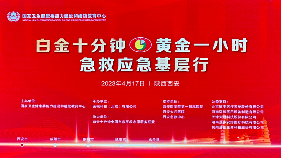 為進(jìn)一步提高院前院內(nèi)急診救治水平,促進(jìn)院前急救體系健康有序發(fā)展,搭建學(xué)術(shù)交流平臺(tái),4月17-21日,由國家衛(wèi)生健康委能力建設(shè)和繼續(xù)教育中心主辦的“白金十分鐘,黃金一小時(shí)”急救應(yīng)急基層行陜西試點(diǎn)培訓(xùn)活動(dòng)在西安站啟動(dòng),途徑咸陽—銅川—延安,在中國革命的“紅都”志丹縣圓滿結(jié)束。