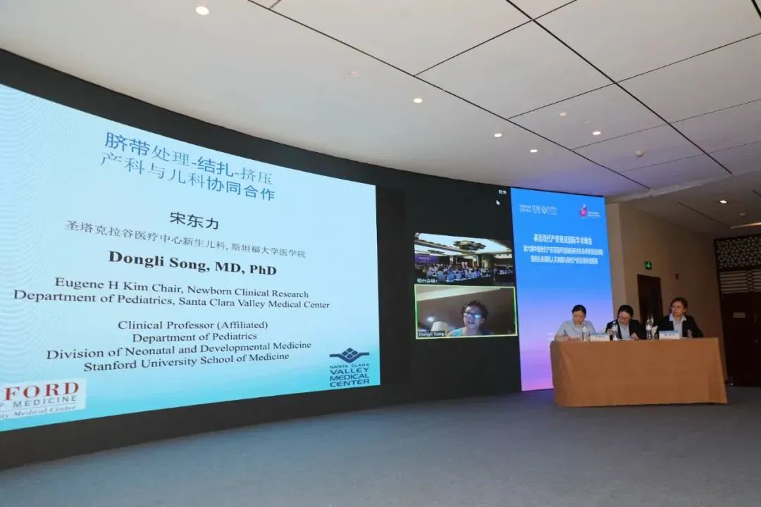 上午第二階段的峰會由桓臺縣婦幼保健院產(chǎn)科鄭愛妮主任、耿艷芳主任、產(chǎn)房李愛紅助產(chǎn)士長一起主持。斯坦福大學(xué)醫(yī)學(xué)院宋東力教授以“延遲臍帶節(jié)扎-產(chǎn)科與新生兒科的合作”為題講述了胎盤輸血/臍帶擠壓的益處。Novant Health Forsyth醫(yī)學(xué)中心母胎醫(yī)學(xué)??脐悇P醫(yī)生線上介紹了美國的產(chǎn)房分級診療體系。美國哈佛大學(xué)麻省總院王景平教授講授了麻省總院產(chǎn)房安全模擬人實訓(xùn)。